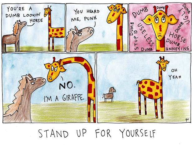 September 26, 2014 – Stand up for yourself September 26, 2014 Penny Redshaw daily giraffesart, cartoon, comic, drawing, funny, illustration Share this: Click to share on Facebook (Opens in new window) Facebook Click to share on X (Opens in new window) X Click to share on Tumblr (Opens in new window) Tumblr Click to share on Pinterest (Opens in new window) Pinterest Click to email a link to a friend (Opens in new window) Email Like Loading... Related