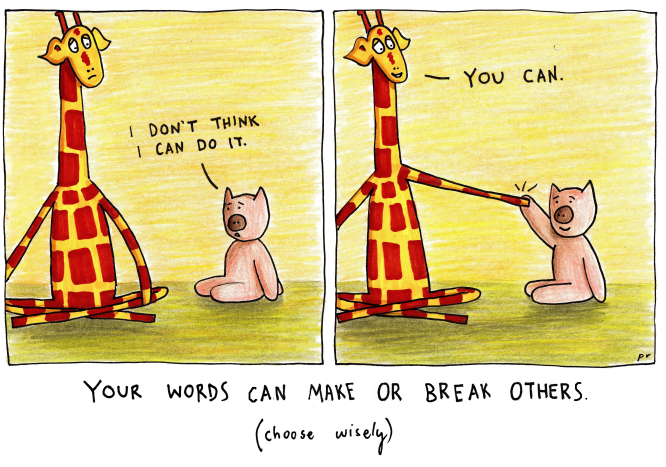 1. I fight an invisible illness (i.e. I have chronic pain and feel sick on the inside, but look normal on the outside). This lovely post makes me think of my supportive friends and family. My husband, for example, helps motivate me to stay positive with his words. However he feels helpless, because there is no action he can take to help me or take away my pain. I tell him all the time that his supportive words are what I need most from him, and he is providing that. May I reblog this cartoon on my own blog to reinforce to him and my friends and family that their amazing support is going a long way to help me through my illness (with 100% link back and recognition to you of course)(with 100% link back and recognition to you of course)? And now I have another motivation in life: Motivating Giraffe. These drawings/cartoons/illustrations bring me great joy and comfort. I have been promoting you and your new book through my Fiction page on Facebook The Adventures of Dr. Murphy B Cat and my personal Facebook page. You are clearly a delightful person. I truly wish you all the success and happiness you desire!