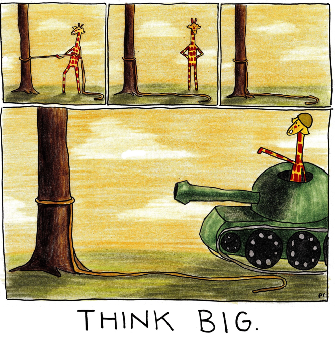 2. That was wierd! I just commented on a blog about thinking big, and then scoled down one post, and here was yours, entitled: ‘Think Big’… I feel like I just won a lottery or something. Anyway, that’s why I’m following you. Thinking big here…