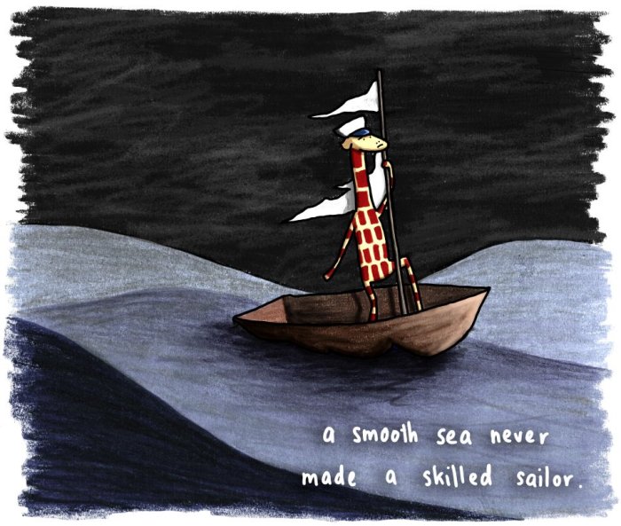 January 16, 2017 – Skilled sailors January 16, 2017January 16, 2017 Penny Redshaw daily giraffesart, cartoon, drawing, hope, illustration, inspiration, life, motivation, quotes Share this: Click to share on Facebook (Opens in new window) Facebook Click to share on X (Opens in new window) X Click to share on Tumblr (Opens in new window) Tumblr Click to share on Pinterest (Opens in new window) Pinterest Click to email a link to a friend (Opens in new window) Email Like Loading... Related