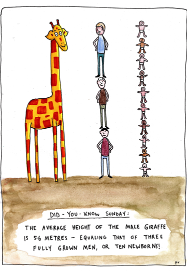 September 28, 2014 – Height September 28, 2014 Penny Redshaw daily giraffes art, cartoon, cute, drawing, illustration, trivia Share this: Click to share on Facebook (Opens in new window) Facebook Click to share on X (Opens in new window) X Click to share on Tumblr (Opens in new window) Tumblr Click to share on Pinterest (Opens in new window) Pinterest Click to email a link to a friend (Opens in new window) Email Like Loading...